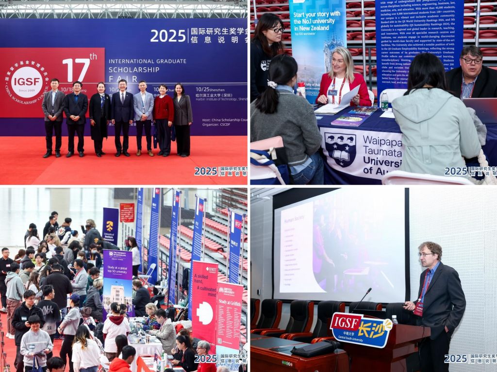 10月22日,第十七届国际研究生奖学金信息说明会(简称IGSF)长沙站活动在中南大学潇湘校区体育馆举办。本次活动由国家留学基金委员会(CSC)主办,中南大学承办,吸引了来自全球多个国家和地区的近20所知名高校及教育机构参与。