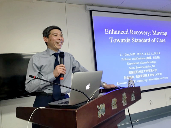 6月13日,美国纽约州立大学石溪分校麻醉科主任,美国加速康复学会(ASER)主席T.J.Gan教授来中南大学湘雅医院麻醉科进行学术交流,并做题为“加速术后康复,走向标准治疗流程”学术报告。
